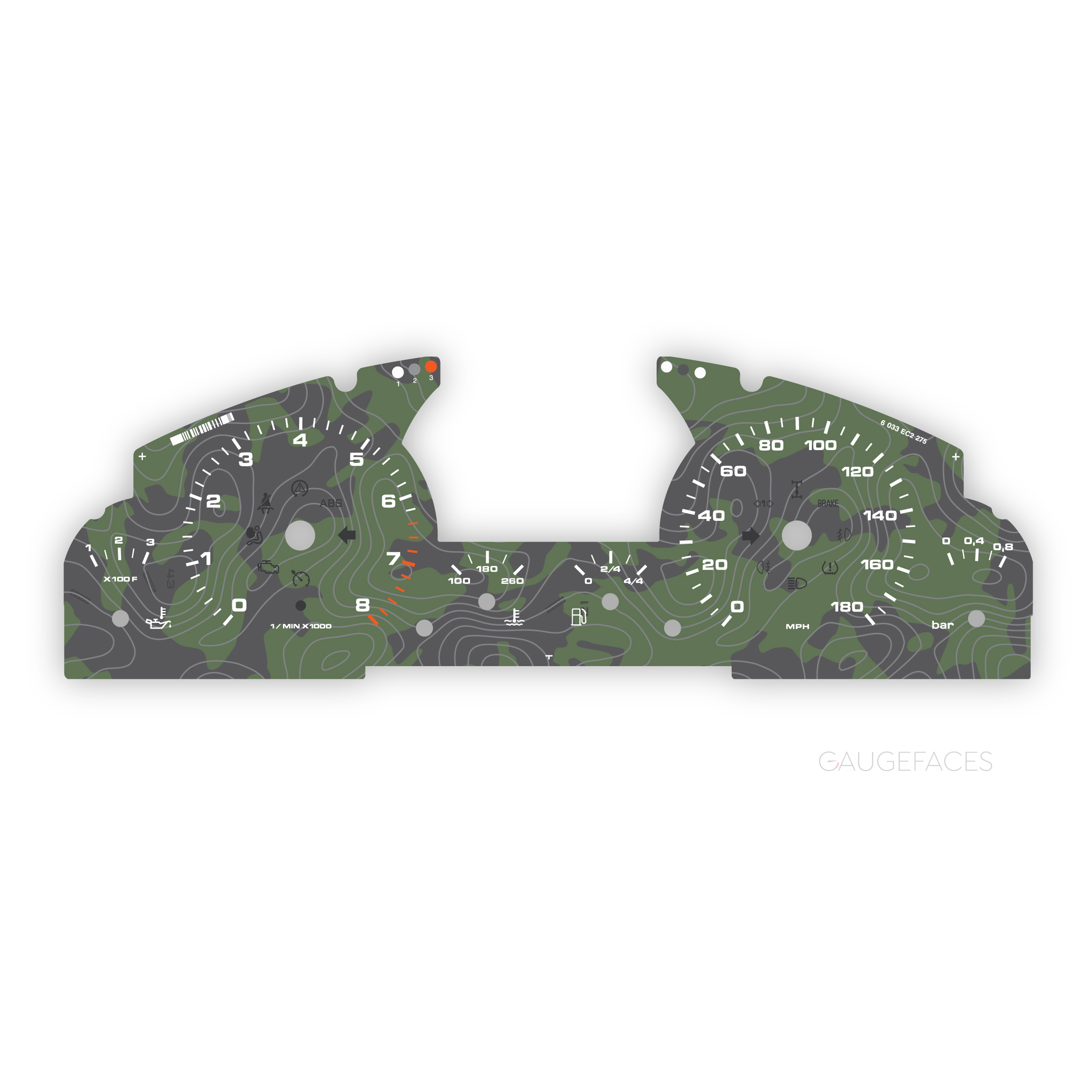 Gauge Face for Porsche 955 / 957 Cayenne Turbo / Turbo S instrument dials – Topographical Map – Olive.