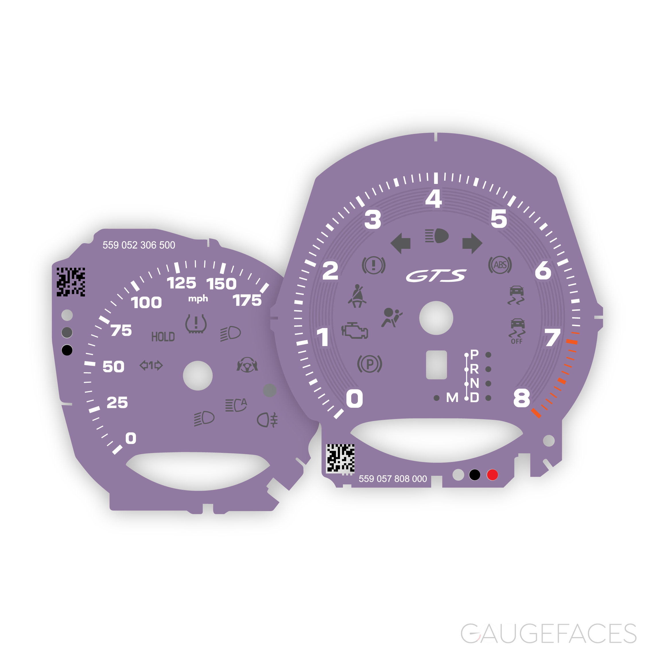 Gauge faces set for Porsche Macan GTS (2021-) – OPTIONS – 8000 RPM, PDK (automatic) transmission – Lavender.