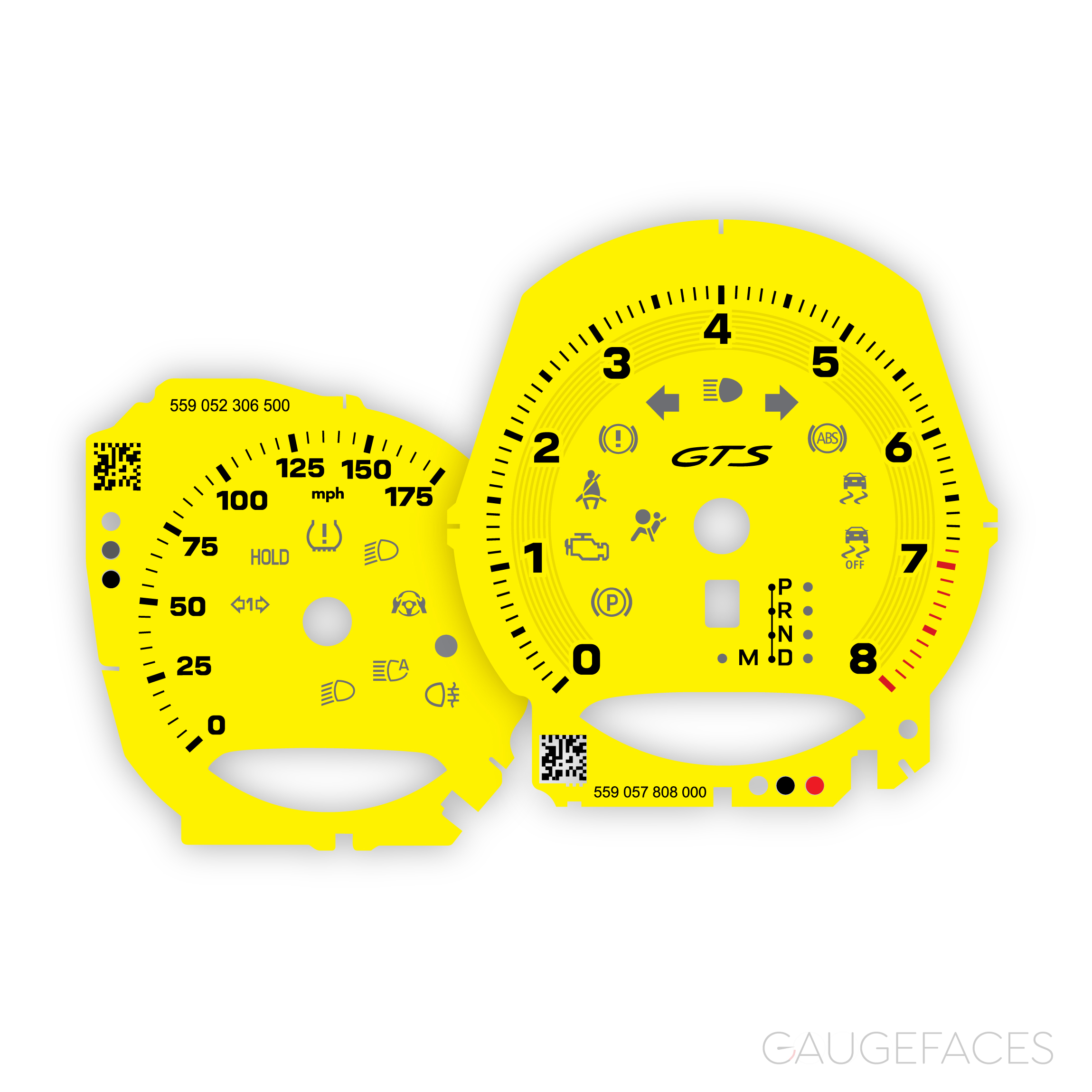 Gauge faces set for Porsche Macan GTS (2021-) – OPTIONS – 8000 RPM, PDK (automatic) transmission – Racing Yellow.
