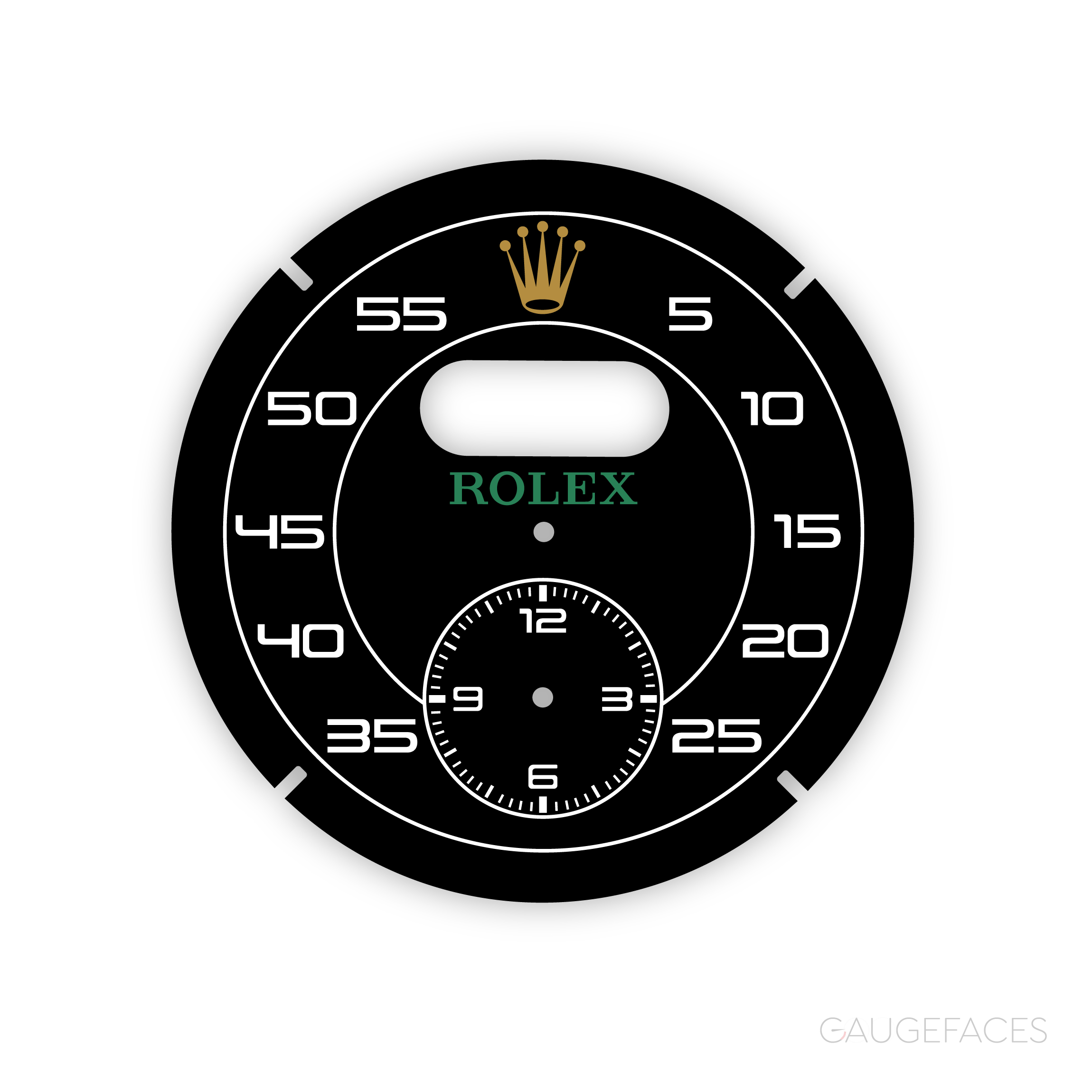 Sport Chrono Clock Dial Gauge Face for Porsche – Rolex Style – Black.