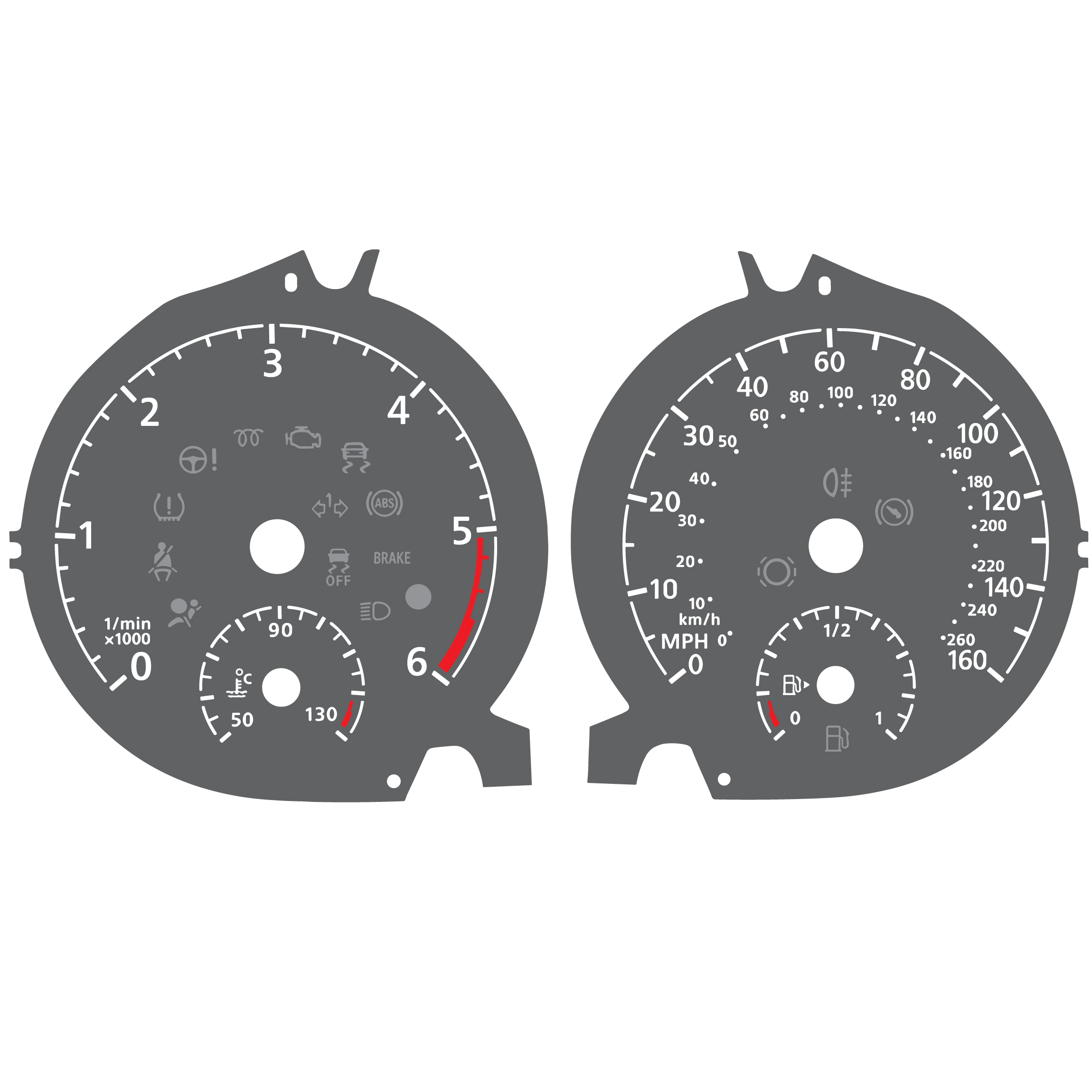 For Volkswagen Golf Mk7 / VW Tiguan / T-Roc and Passat – Diesel – Gauge Face – 260 km/h – 160 MPH – Gray