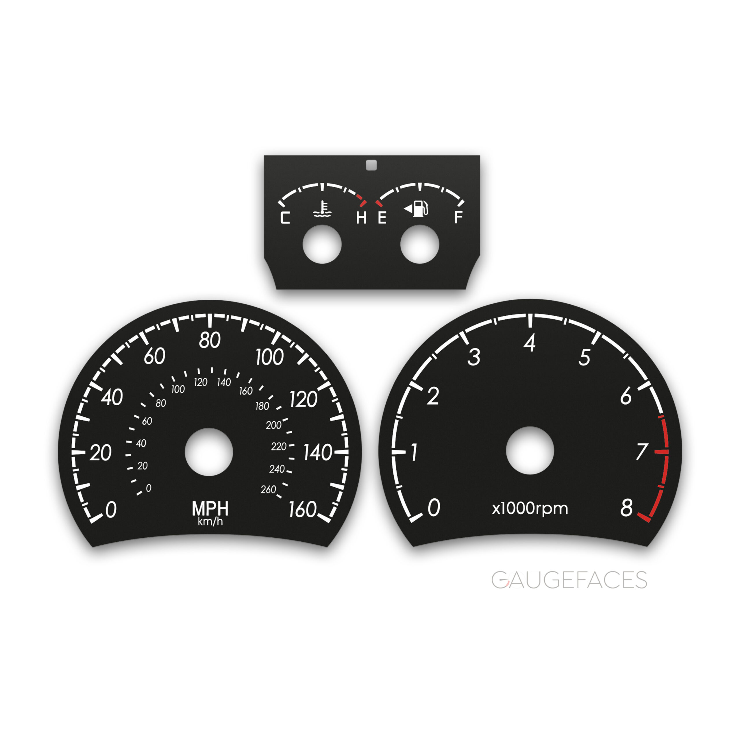 Printed directly on high quality dense plastic with UV printing technology for deep and rich colors. Laser engraving preserves details sharp and crisp. Anti-glint finish makes the surface matt and smooth. The gauge face is pre-cut with precision laser and ready to be installed. All warning lights and icons are the same as original and match OEM placement.