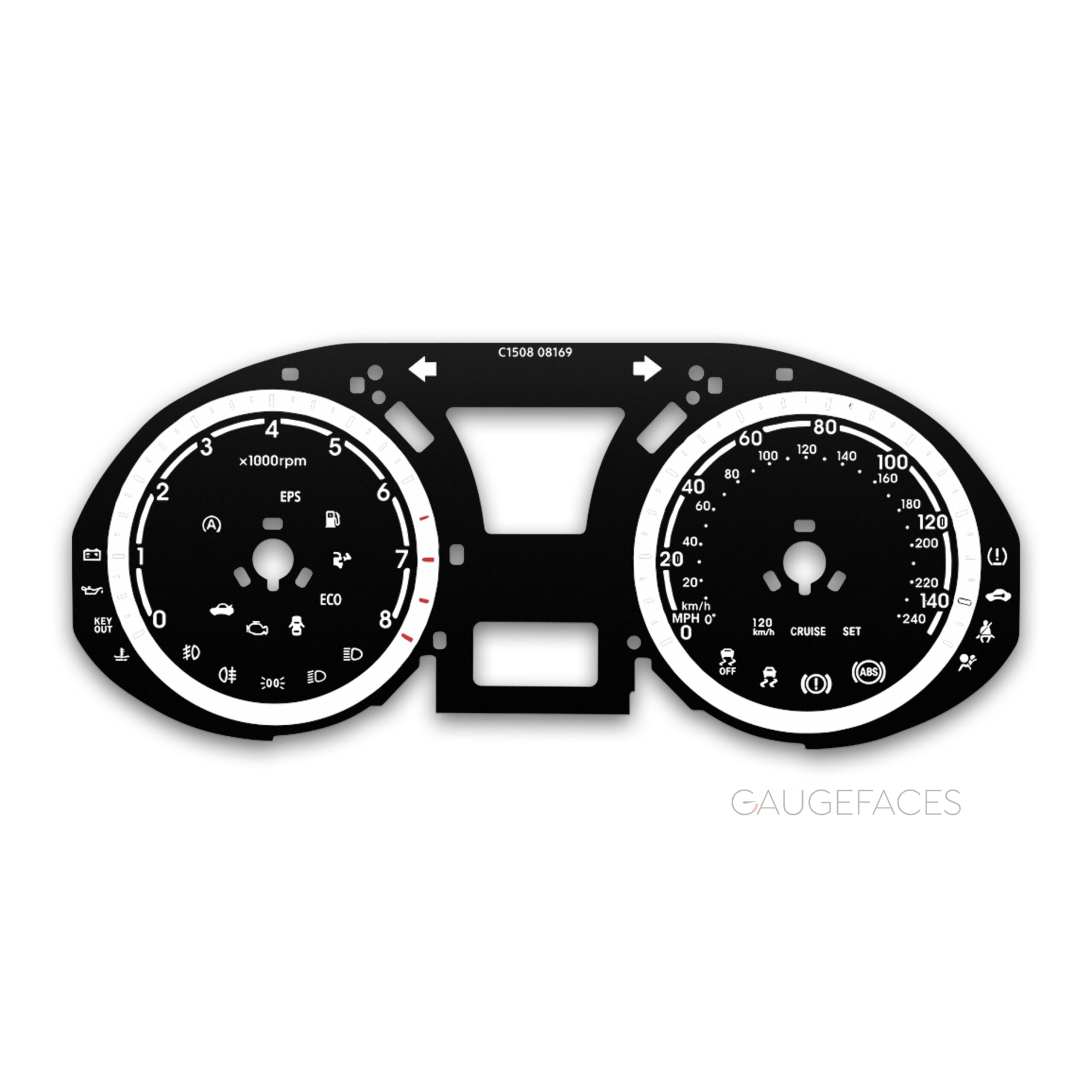 Printed directly on high quality dense plastic with UV printing technology for deep and rich colors. Laser engraving preserves details sharp and crisp. Anti-glint finish makes the surface matt and smooth. The gauge face is pre-cut with precision laser and ready to be installed. All warning lights and icons are the same as original and match OEM placement.