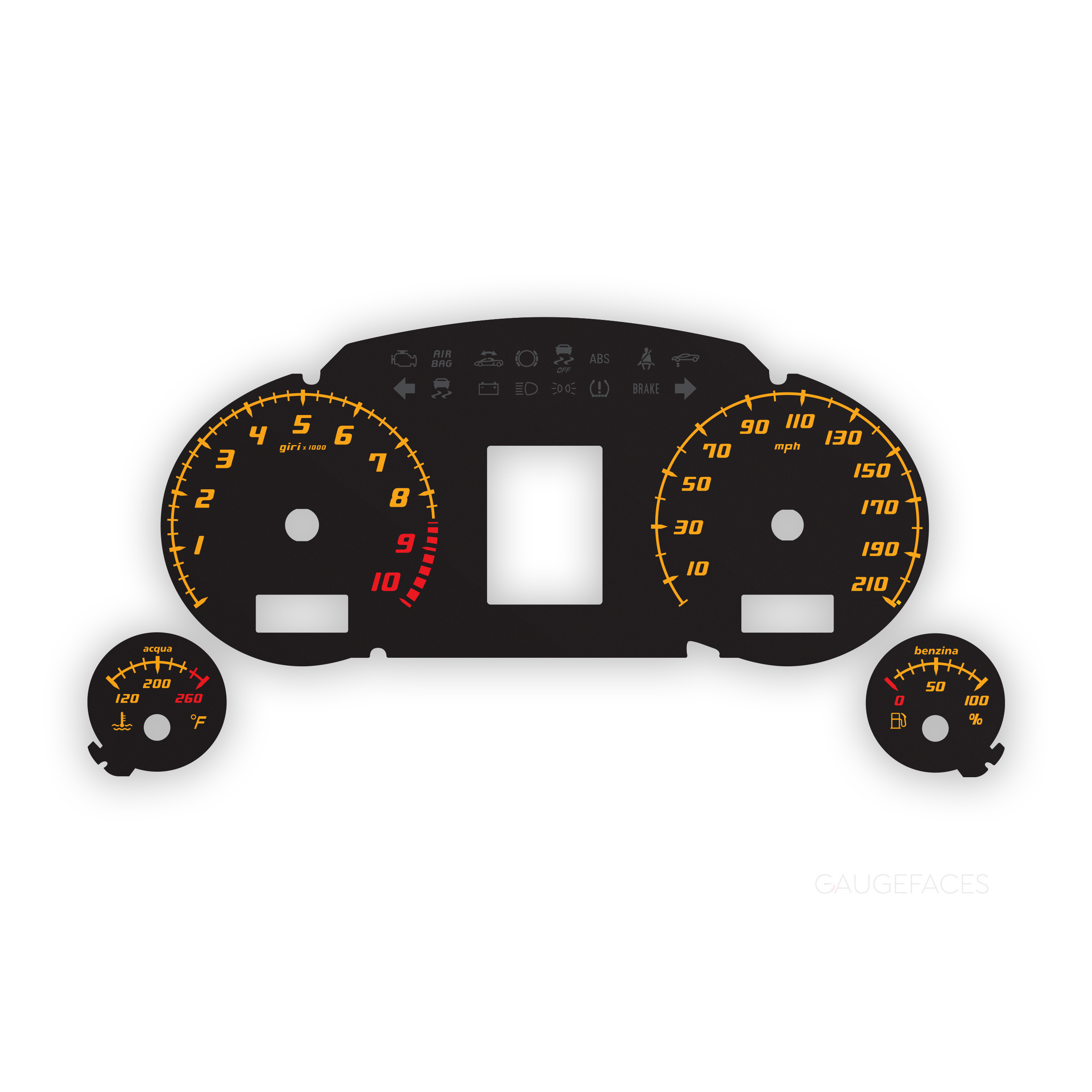 Lamborghini Gallardo Superleggera Gauge Face – US-Spec – 210 MPH – 10000 RPM – Black.