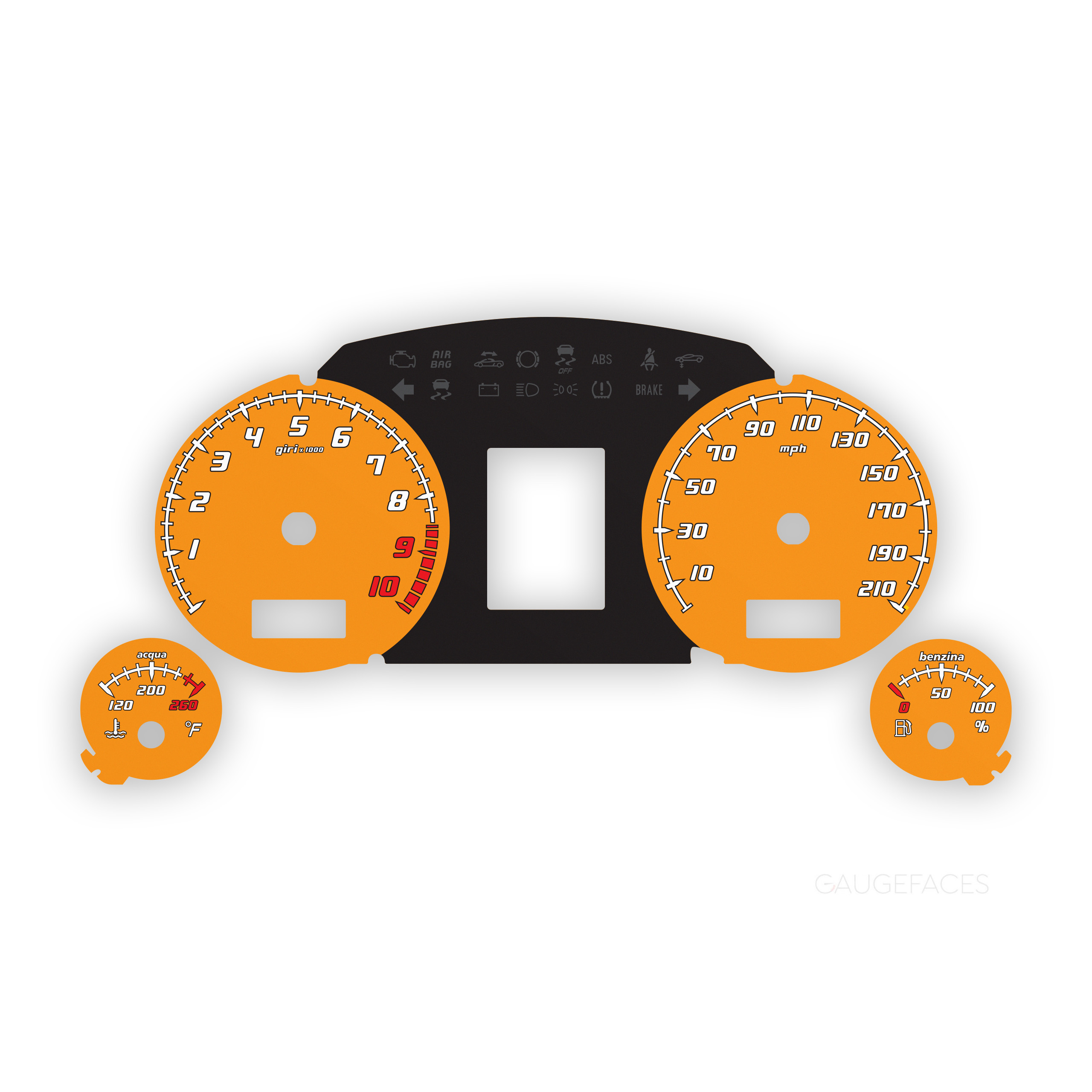 Lamborghini Gallardo Superleggera Gauge Face – US-Spec – 210 MPH – 10000 RPM – Orange.