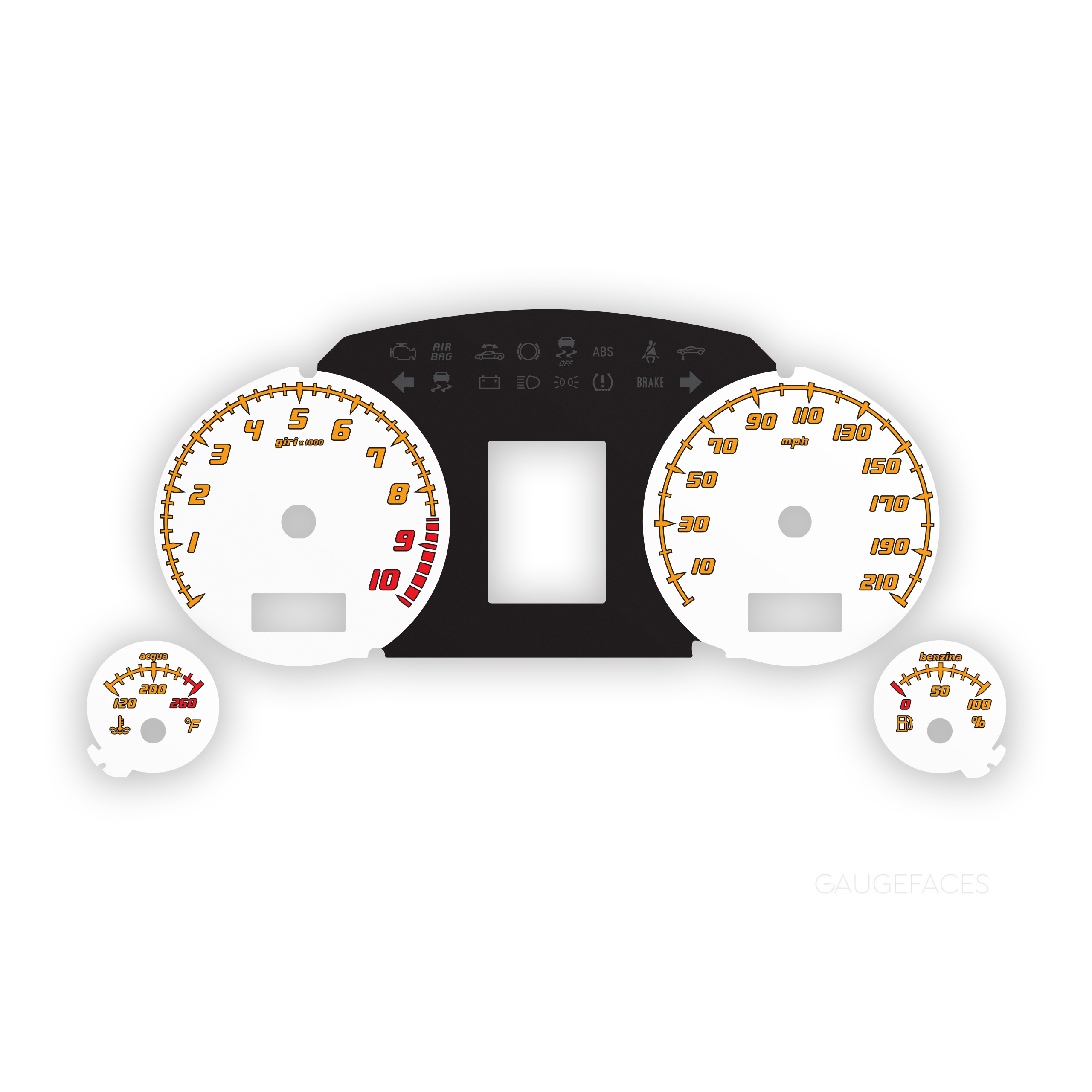 Lamborghini Gallardo Superleggera Gauge Face – US-Spec – 210 MPH – 10000 RPM – White.