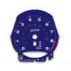 Gauge face tachometer for Porsche 718 Cayman GT4 with 9000 RPM, manual transmission. Black with Shark Blue Solid Accent Track.