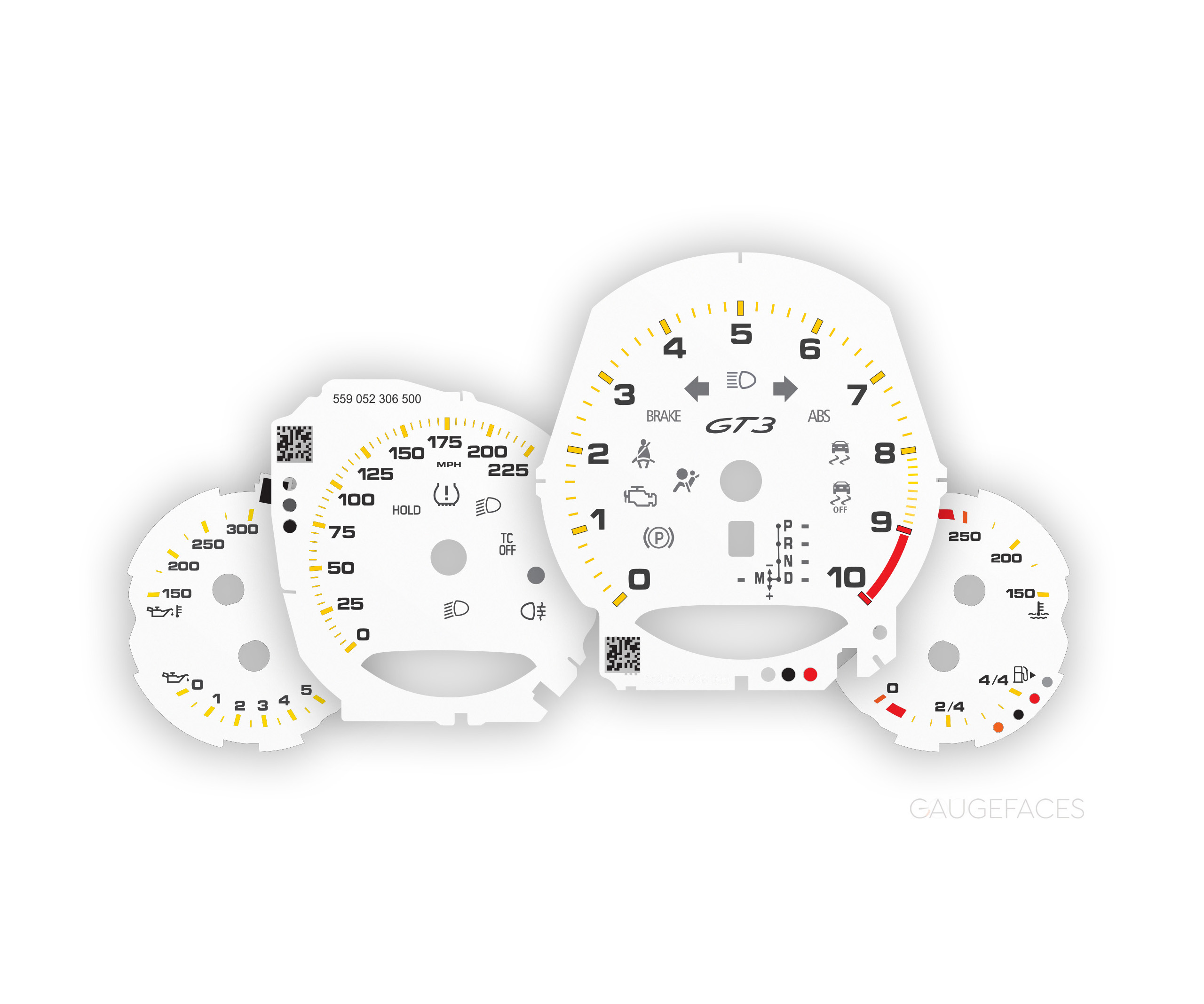Instrument gauge faces set for Porsche 911 991.2 – 10000 RPM – White.