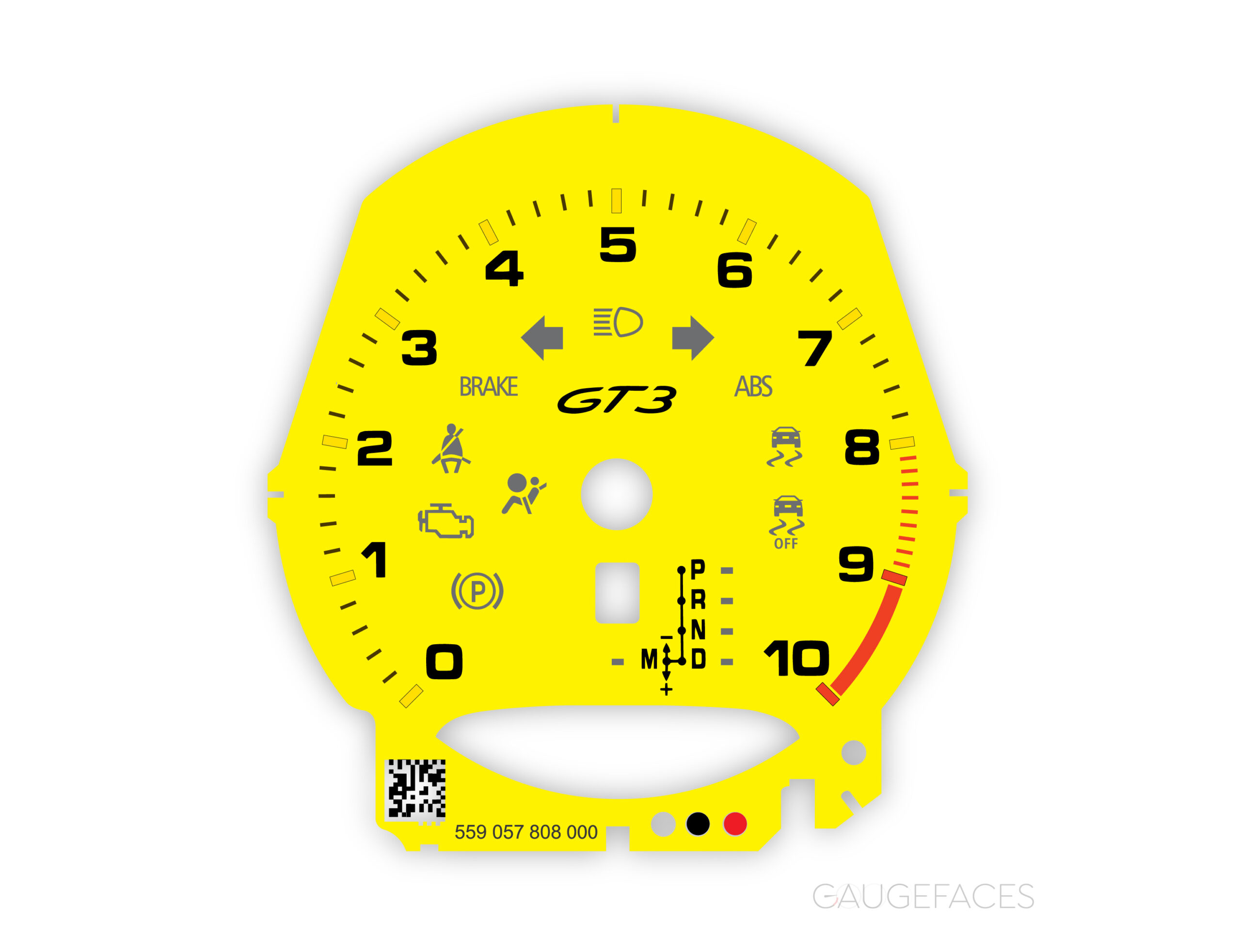 Instrument Cluster Gauge Face Tachometer for Porsche 911 991.1/991.2 GT3 / GT3RS – 10000 RPM – PDK/manual – Racing Yellow.