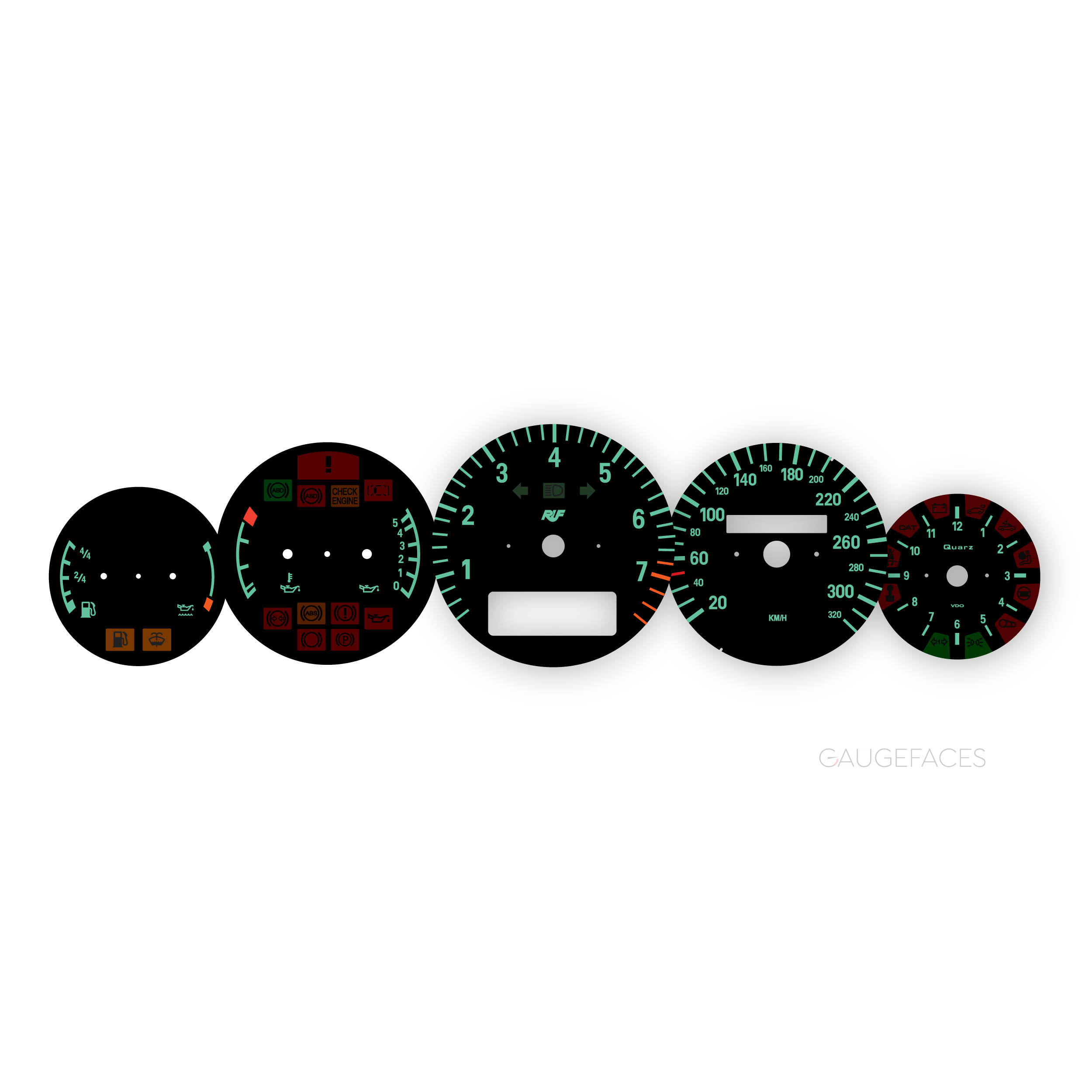 Porsche 911 993 Turbo (1995-98) Instrument Cluster Gauge Faces Set – RUF Edition – Black.