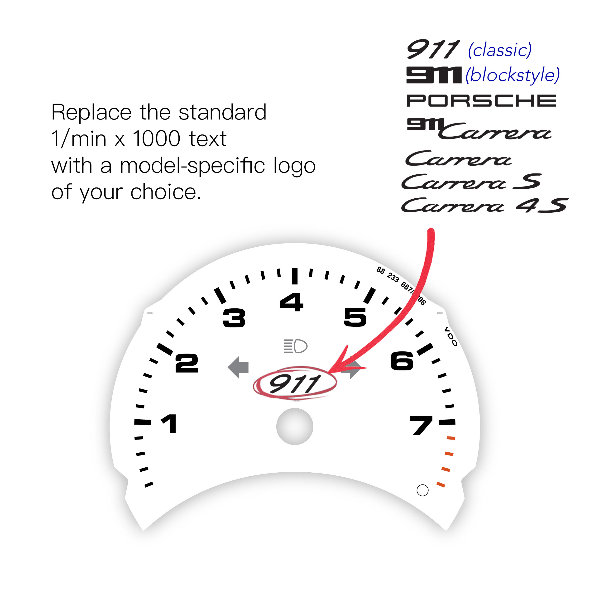 Instrument gauge faces set for Porsche 911 996.1 / 996.2 – 8000 RPM – White with Black Numbers.