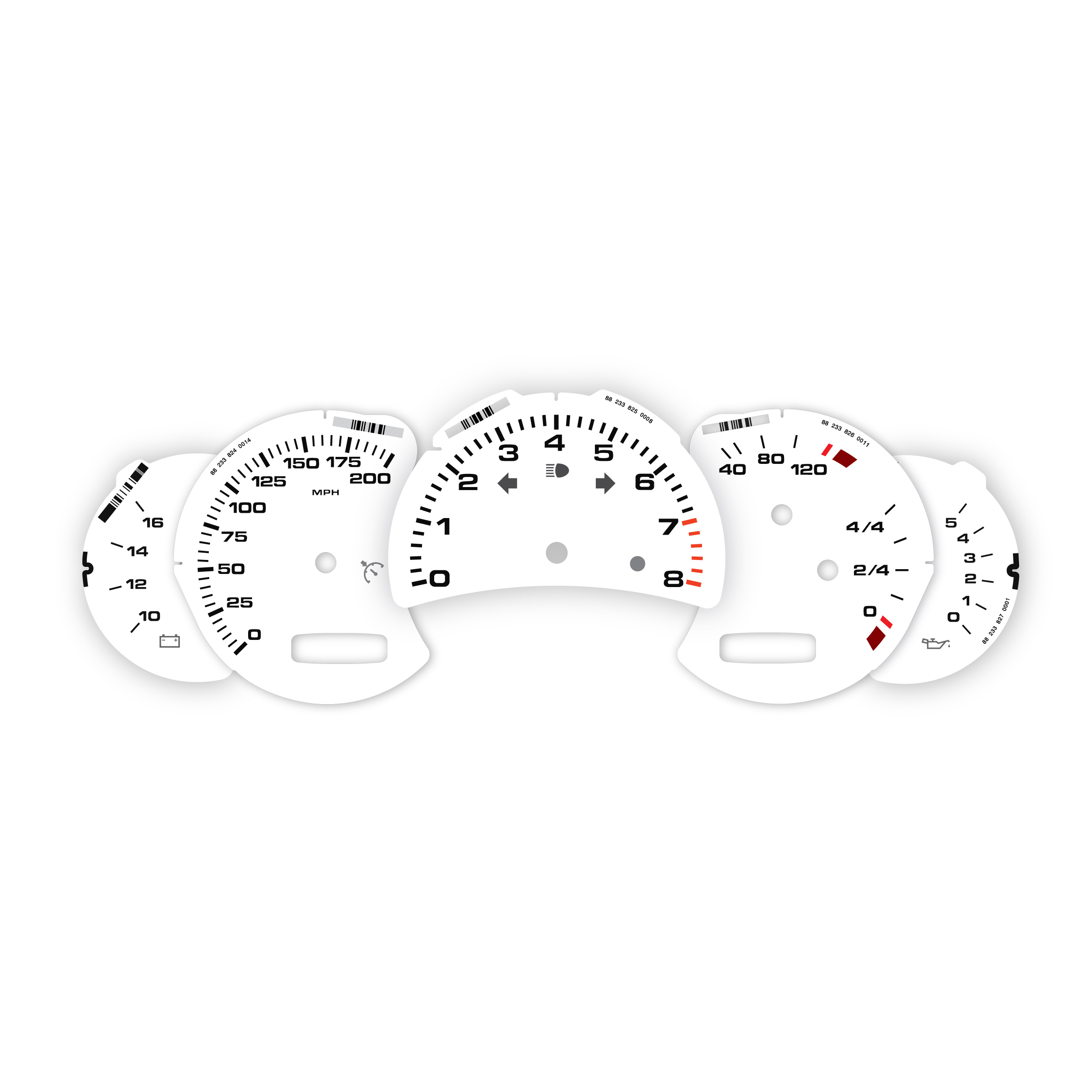 Instrument gauge faces set for Porsche 911 996.2 – 8000 RPM – White with Black Numbers.