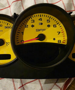 Gauge face tachometer with 911 logo for Porsche 996 Turbo, 8000 RPM – Yellow.