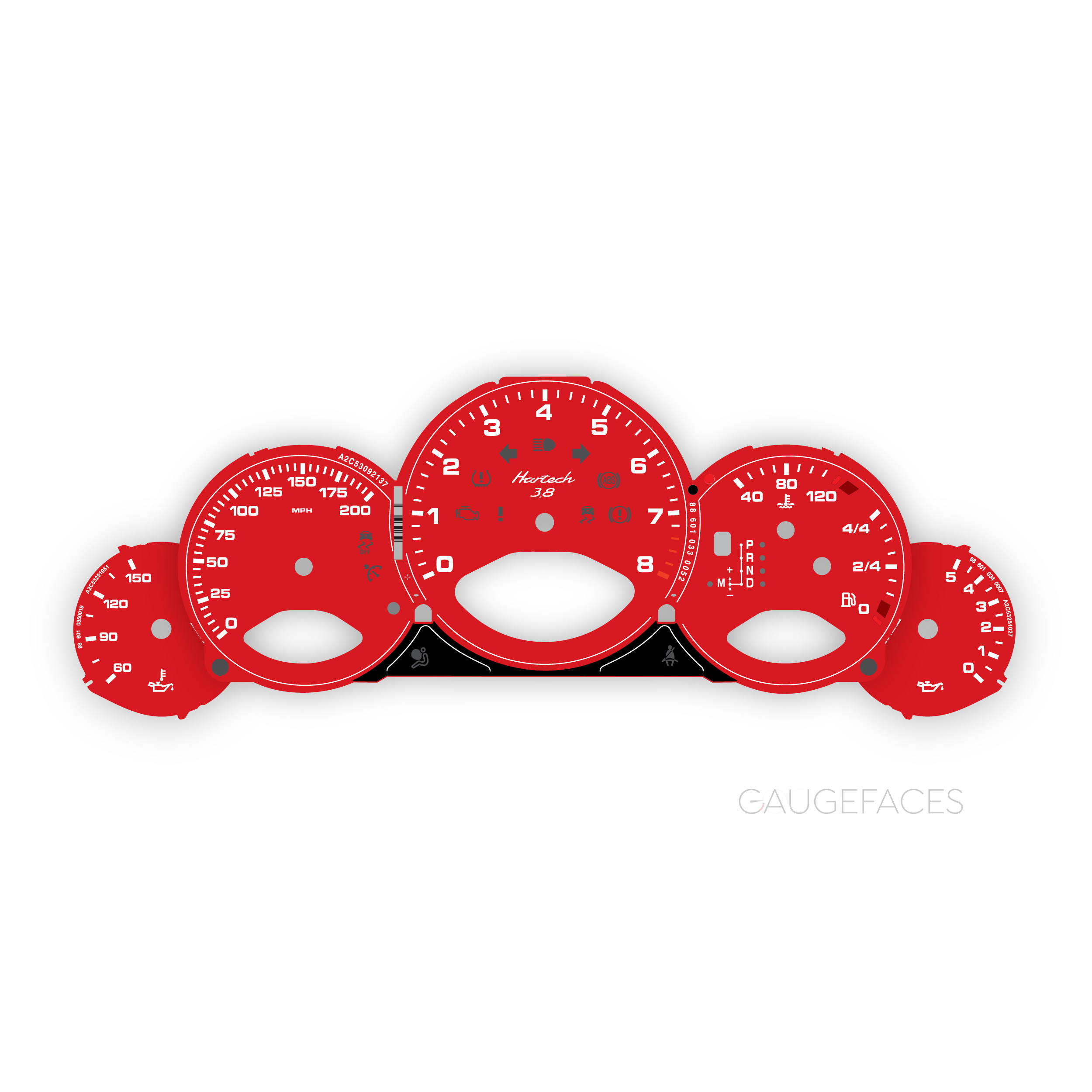 Instrument Gauge Faces Set for Porsche 911 997.1 / 997.2 3.8L – Guards Red – Hartech 3.8 Logotype.