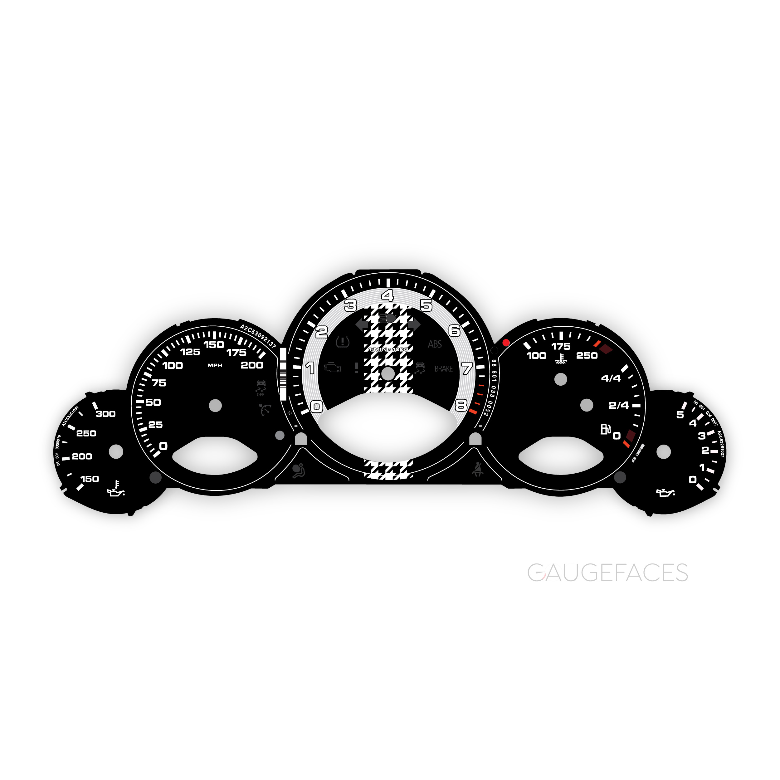 For Porsche 911 997.2: Gauge Faces – US-Spec – Manual – Custom Design – Black with Gray Solid Accent Ring (Pepita Pattern)
