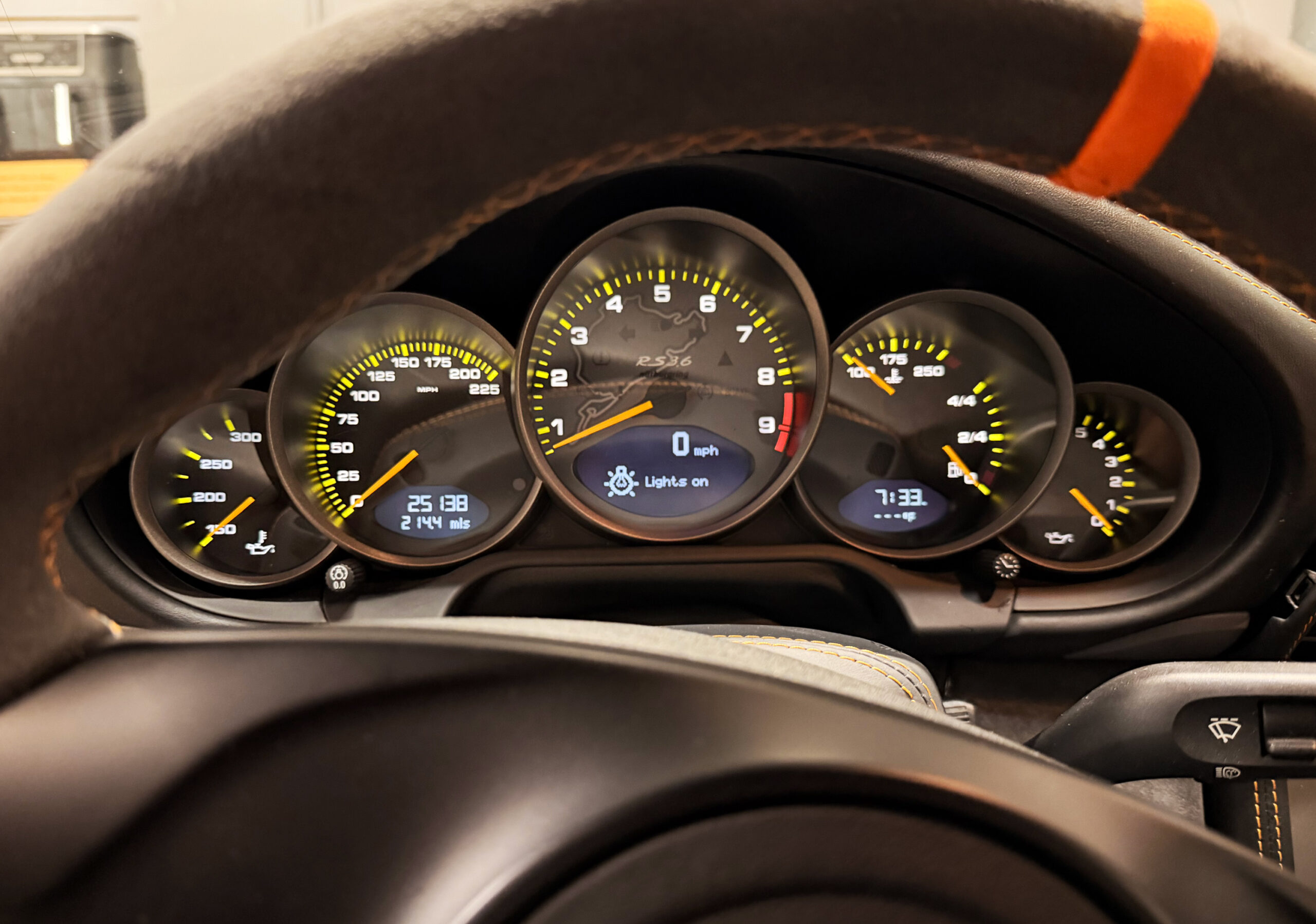 Porsche 911 997.1 GT3 RS Gauge Faces Set – Custom Design – RS 3.8 Nurburgring Logo – US-Spec – Black with Gray Tachometer