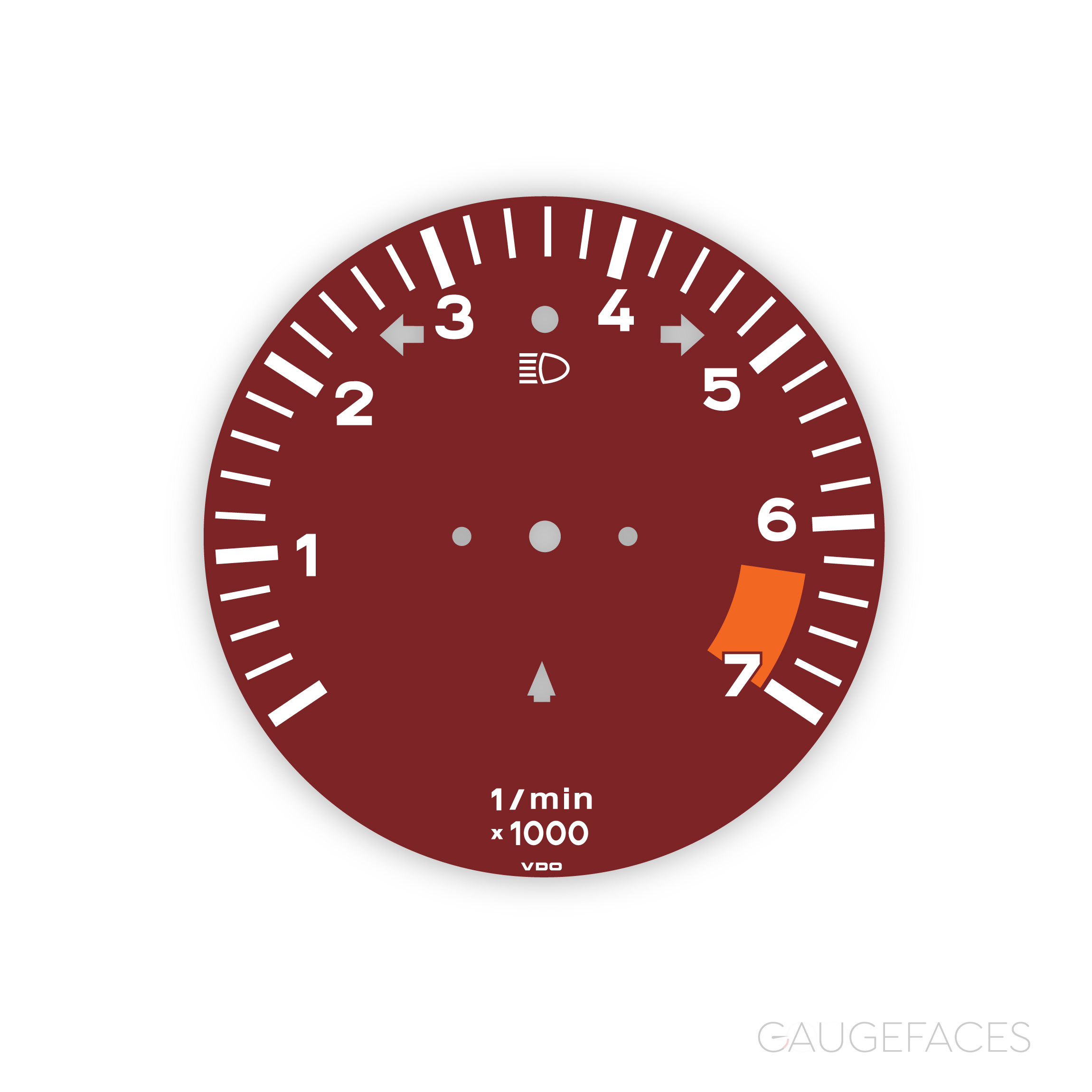 Gauge Face Tachometer for Porsche 911G Carrera 3.2 (1987-89) – 7000 RPM – Burgundy.