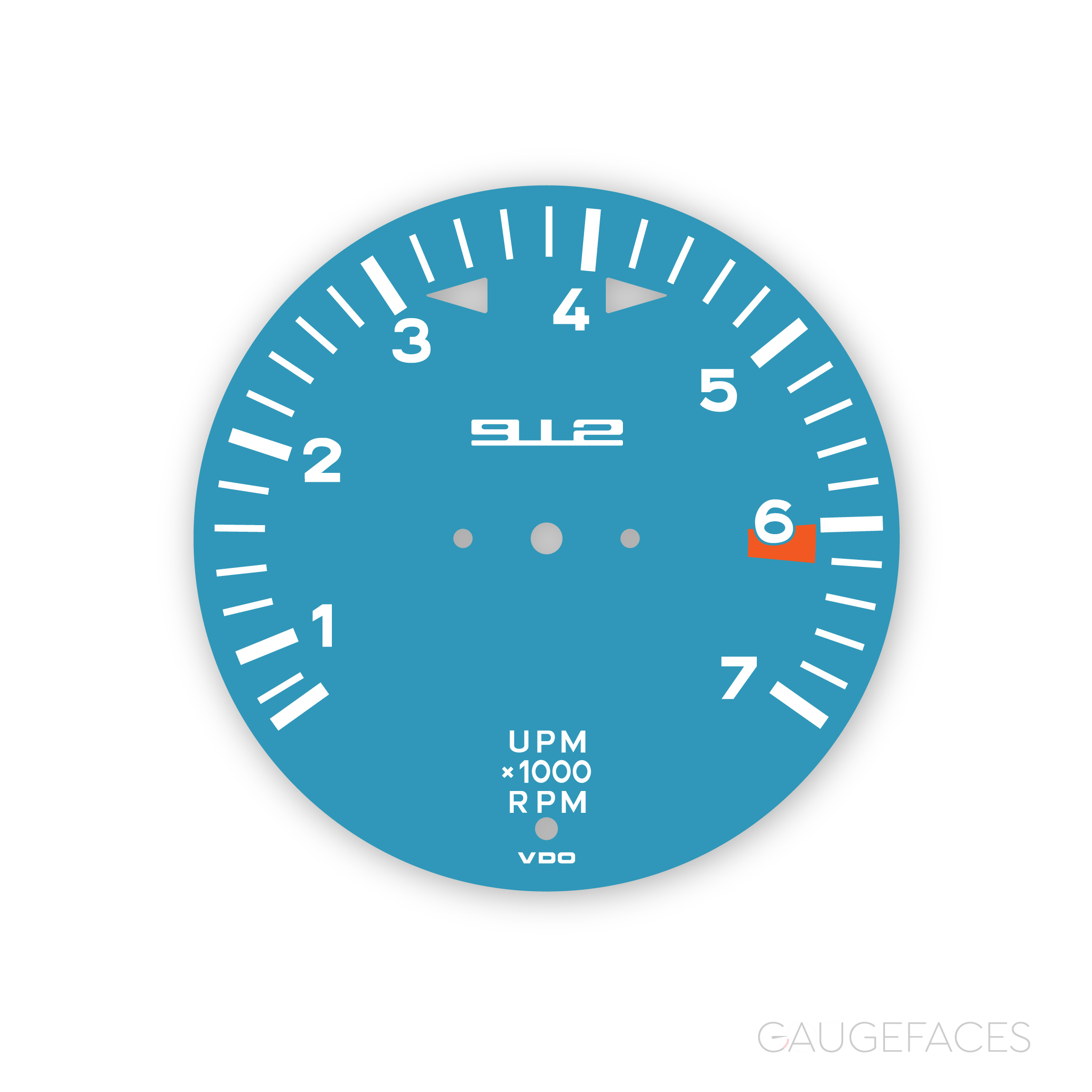For Porsche 912 (1965–1969): Gauge Face Tachometer – 912 Logo – Pastel Blue