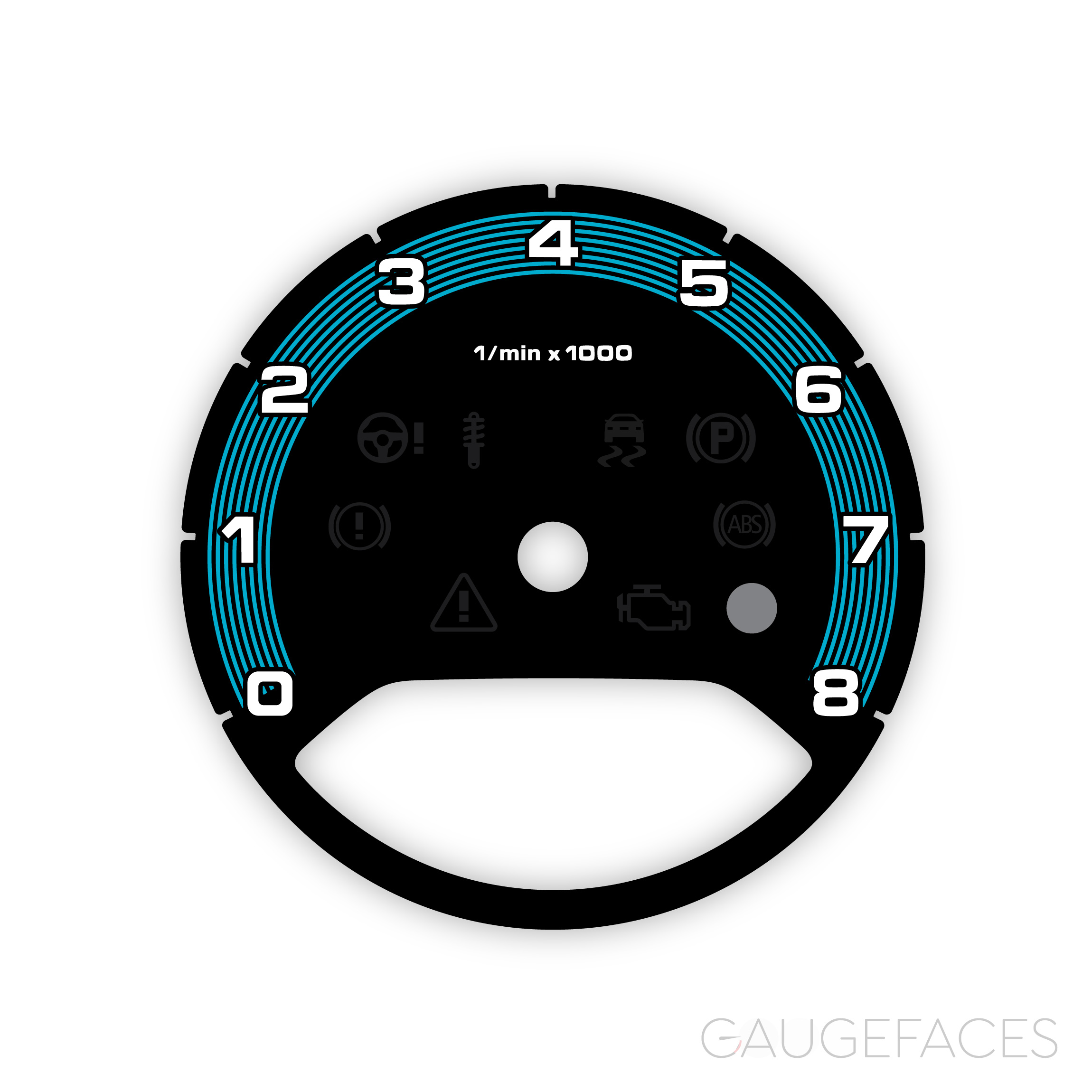Porsche Panamera 971 / Cayenne 9Y0 9YA Gauge Face Tachometer – Base logotype (1/min x 1000) – OPTION – Black with Blue Fine Line Accent Track.