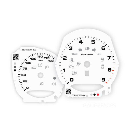 Gauge faces for Porsche 981 Boxster/Cayman S 3.4L with the base (1/min x 1000) logo, 9000 RPM, PDK/manual transmission – White.