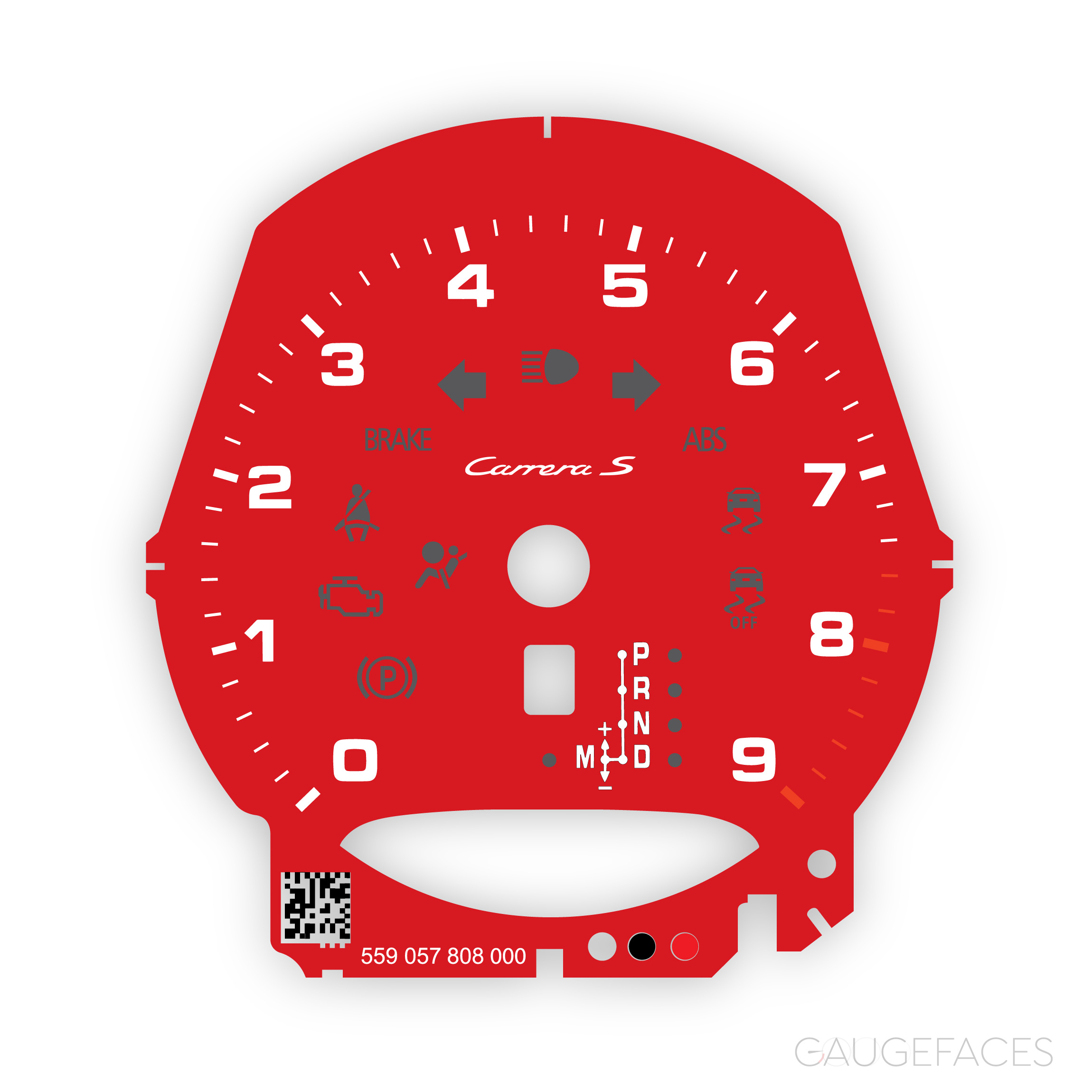 Gauge face tachometer for Porsche 911 991.1 / 991.2 – Carrera S logotype – PDK/Manual transmission (select from the drop-down list) – Guards Red.