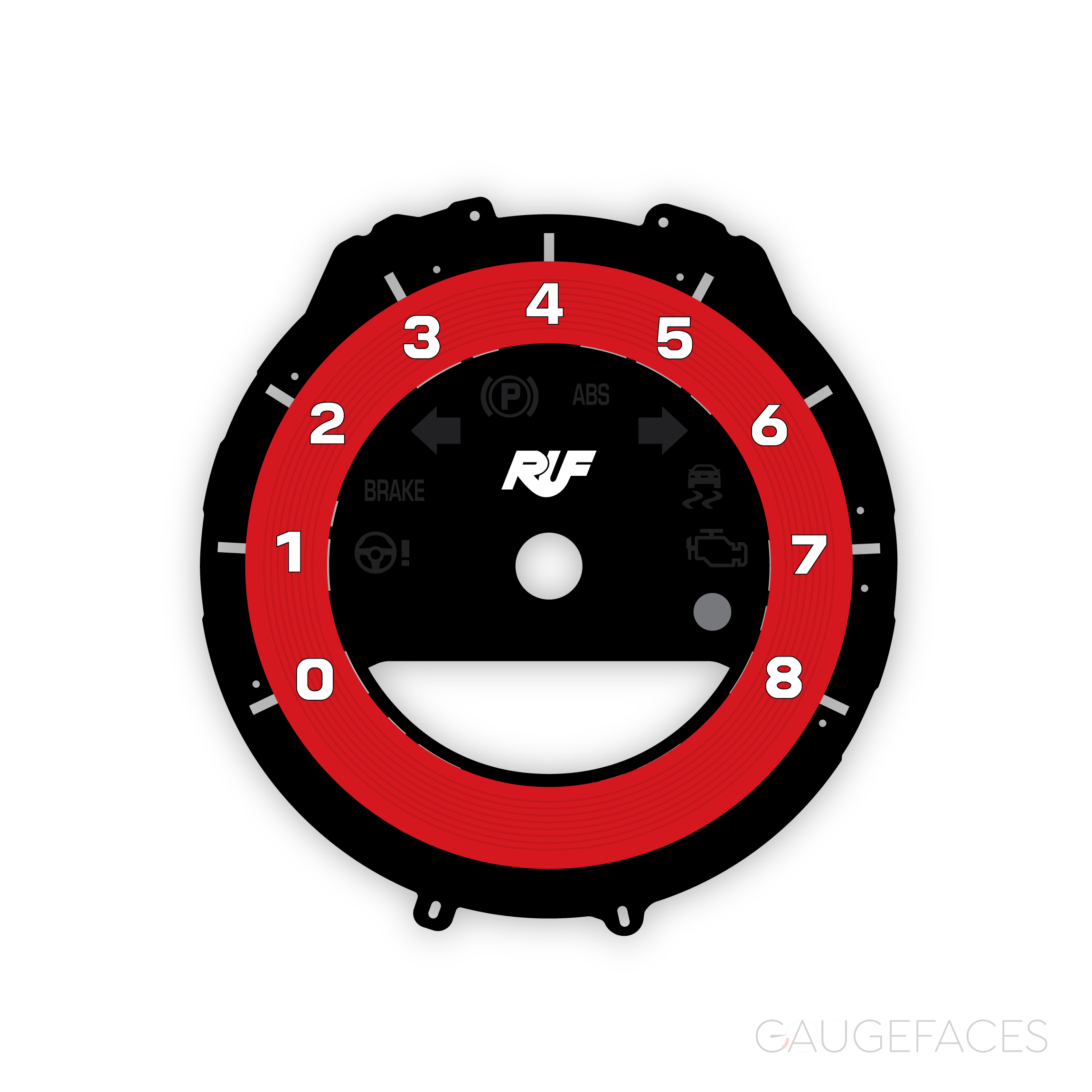 Gauge face tachometer (rev counter) for Porsche 911 992 – 8000 RPM – RUF Logo – Guards Red with white lettering.