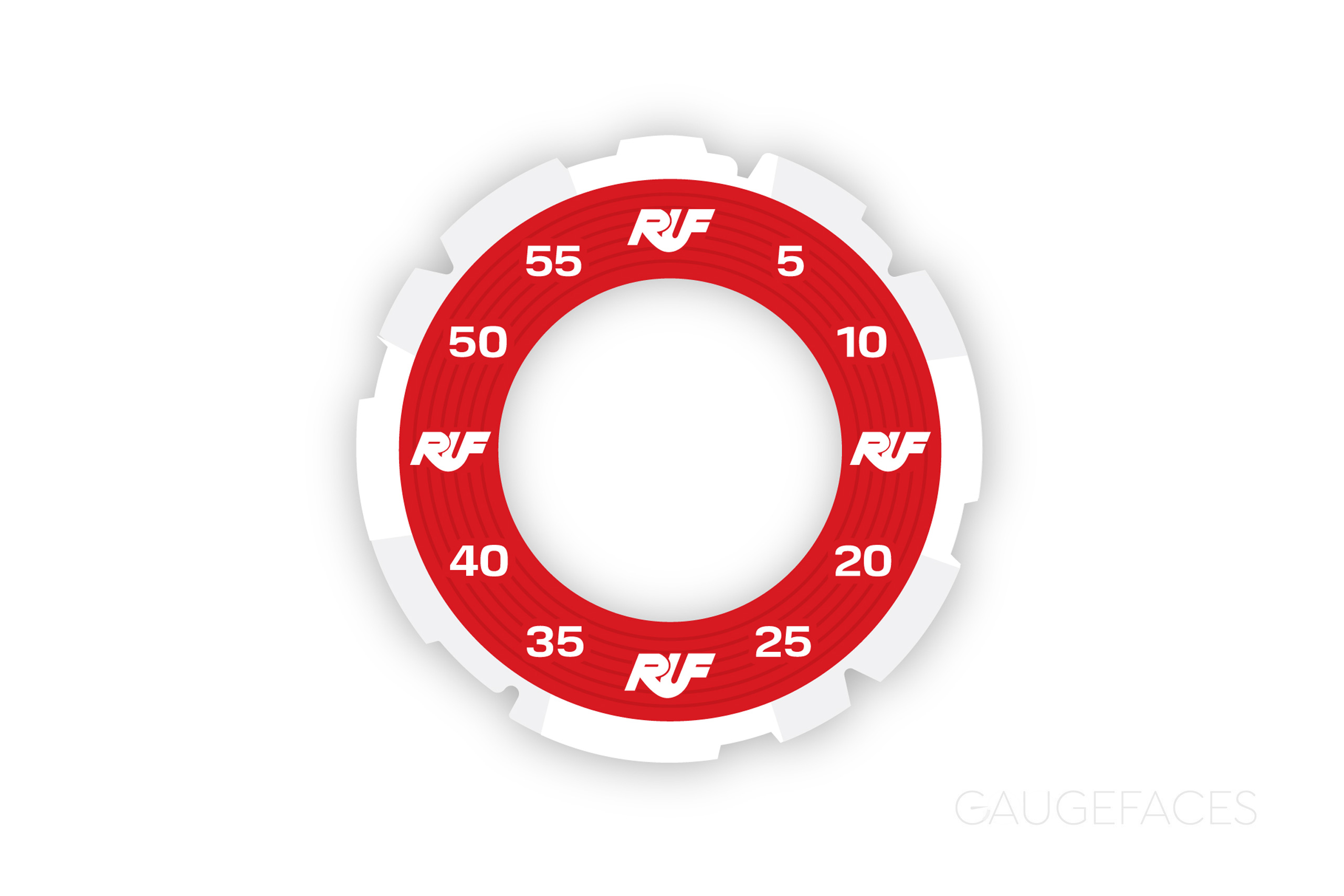 Sport chrono gauge face for Porsche 992 – Guards Red (White Numbers) – RUF logotypes.