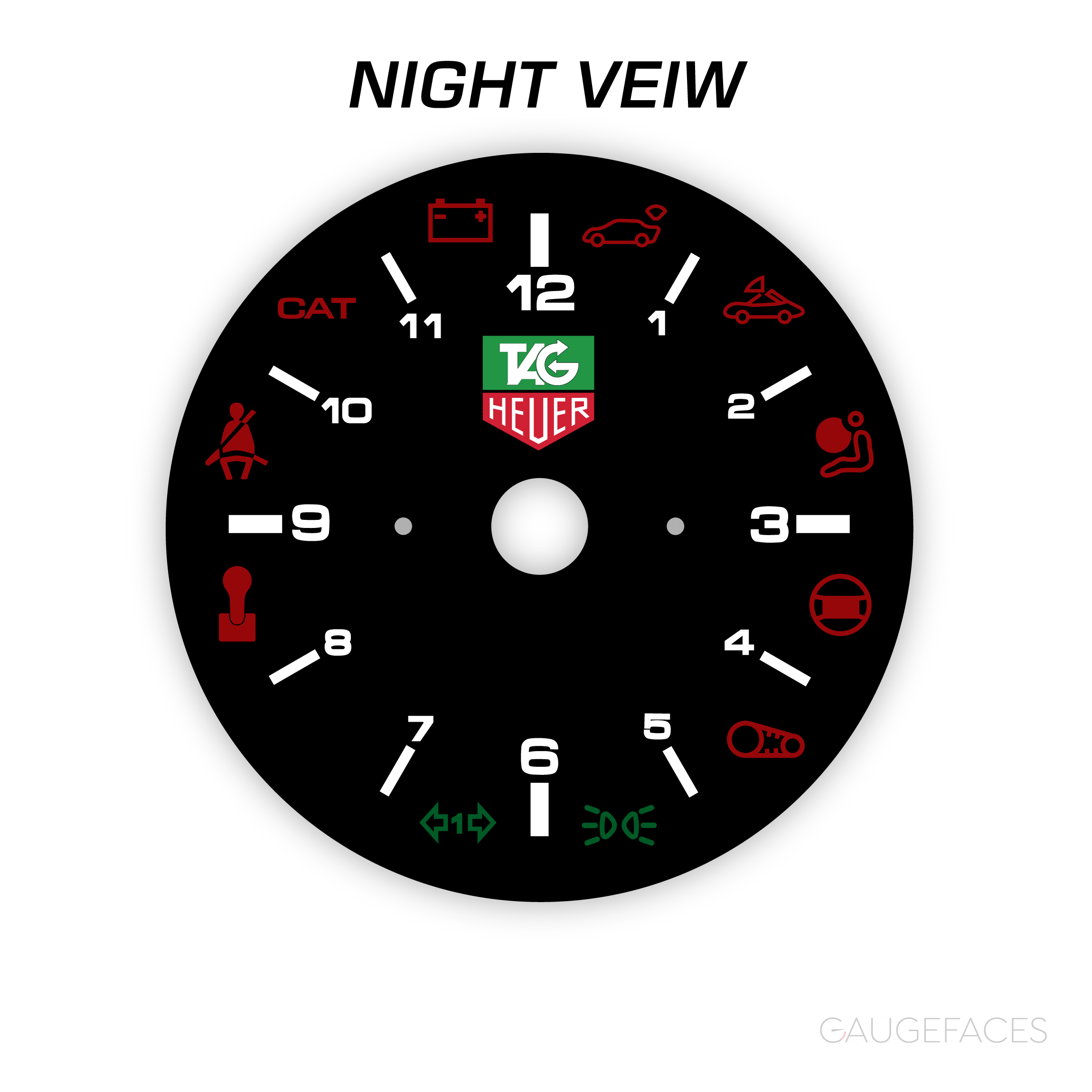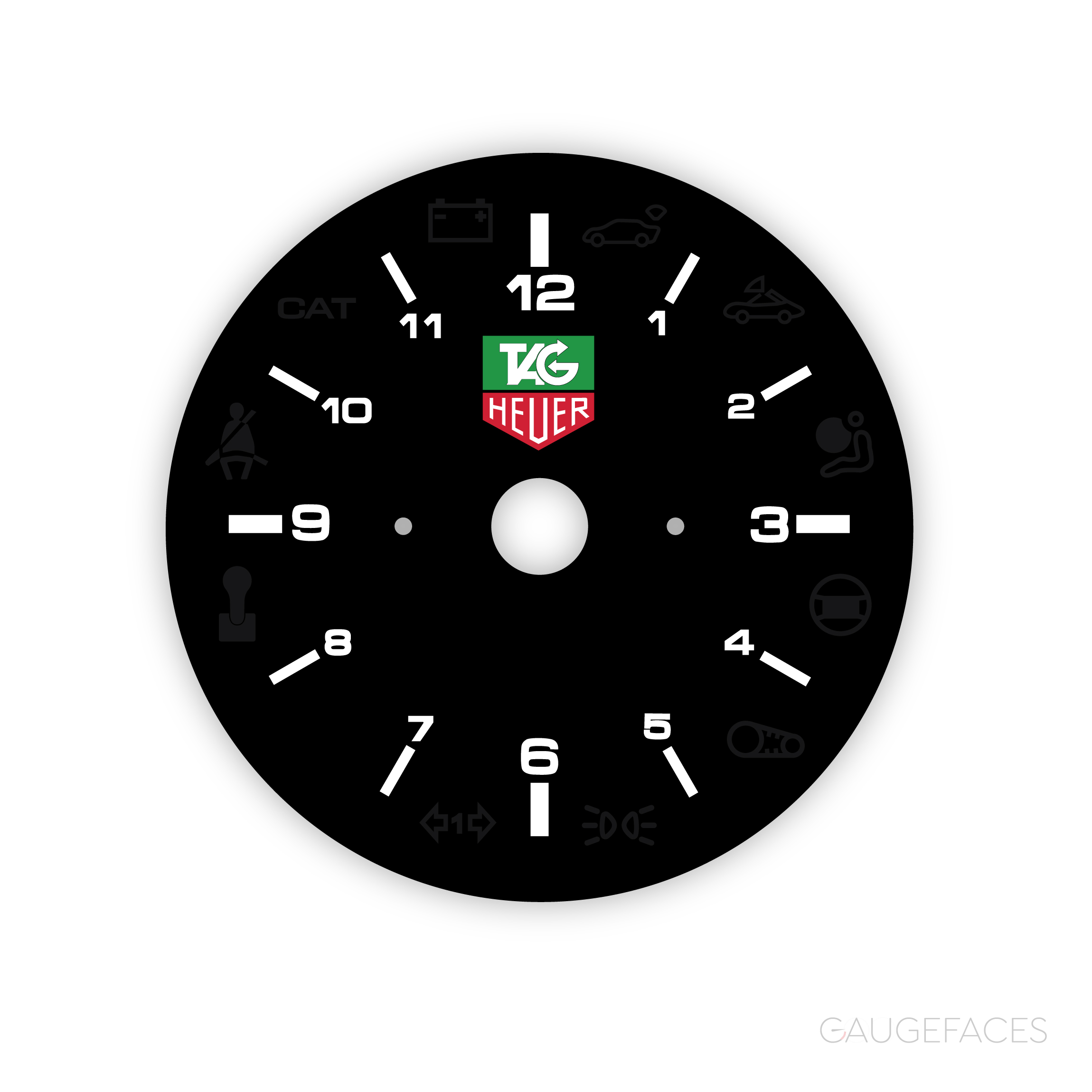 Porsche 993 / 964 / 965 Clock – Tag Heuer Logo – Black (invisible icons).