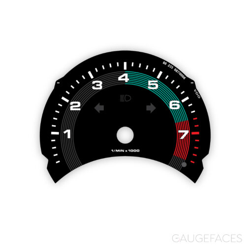 instrument gauge face tachometer (rev counter) for Porsche Boxster 986.1 2.5L – 8000 RPM – Heritage Design Edition – Black with Retro Style Ring.