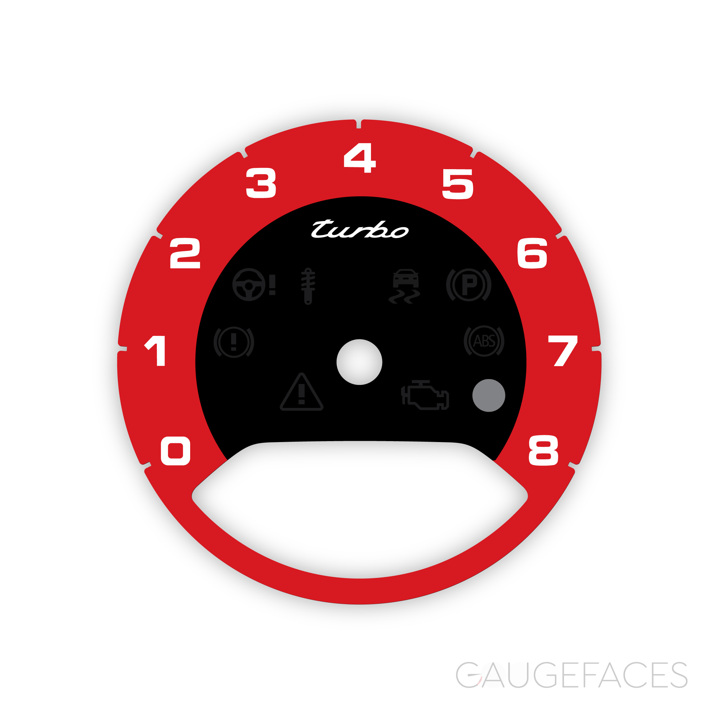Porsche Panamera 971 / Cayenne 9Y0 9YA Gauge Face Tachometer – OPTION – Turbo Logotype – Black / Red.