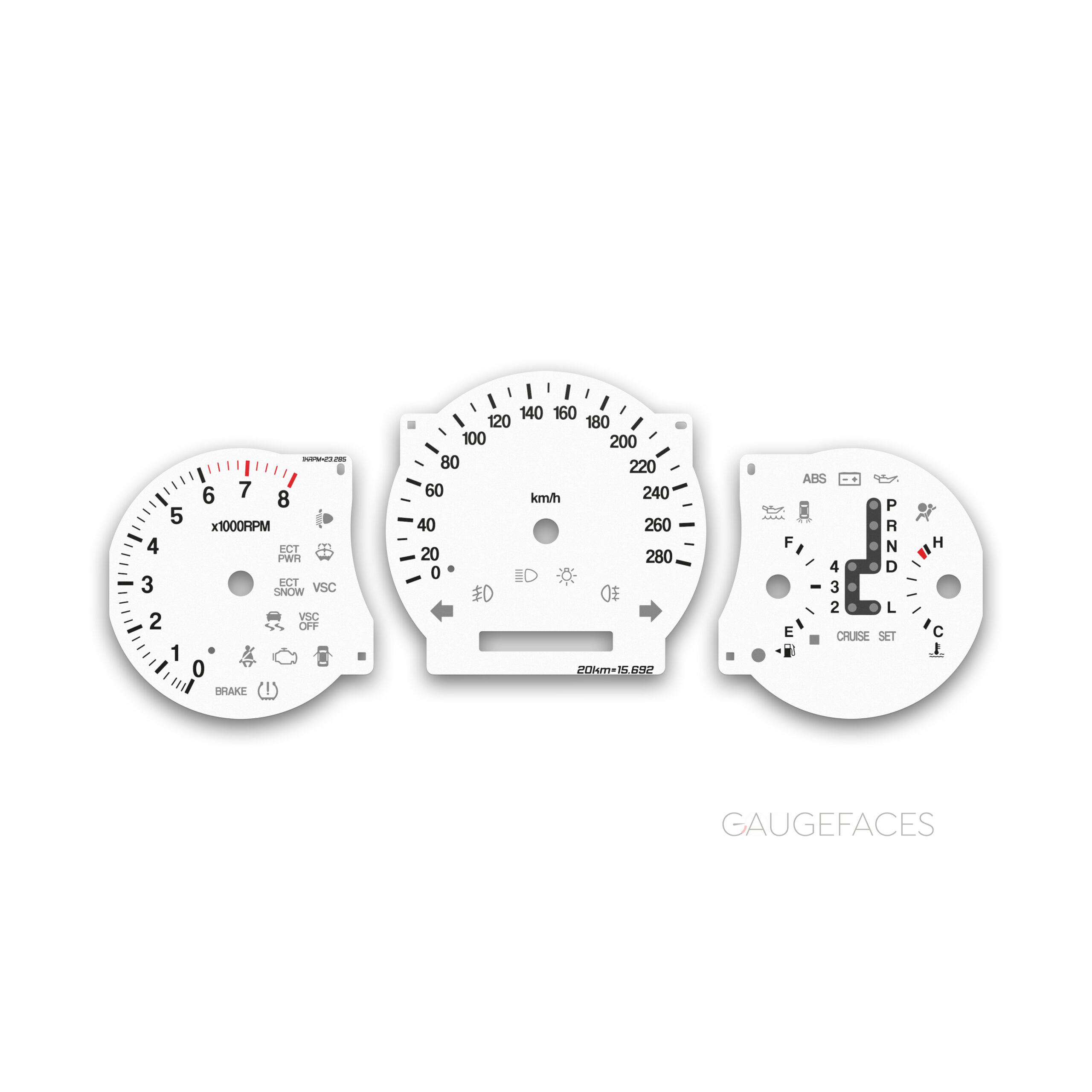 Instrument Cluster Gauge Faces for Toyota Soarer 430SCV (2001–2005) – White.